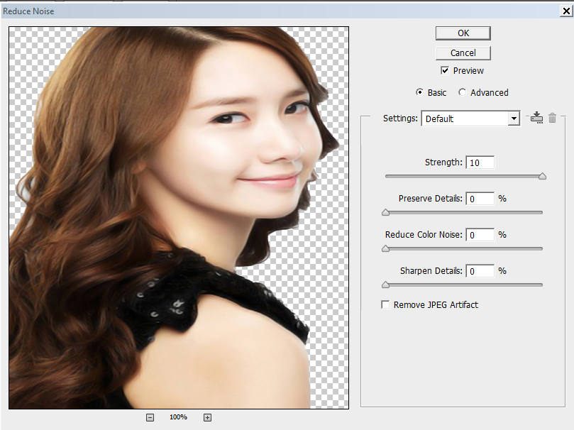 Tiếp đến các bạn vào Filter ->Noise- Reduce Noise để làm mịn da.