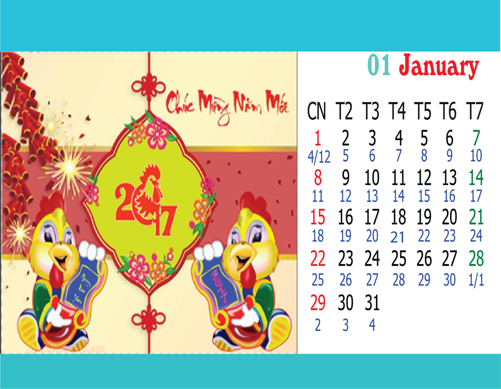 Và cuối cùng chúng ta sẽ được cuốn lịch như sau: